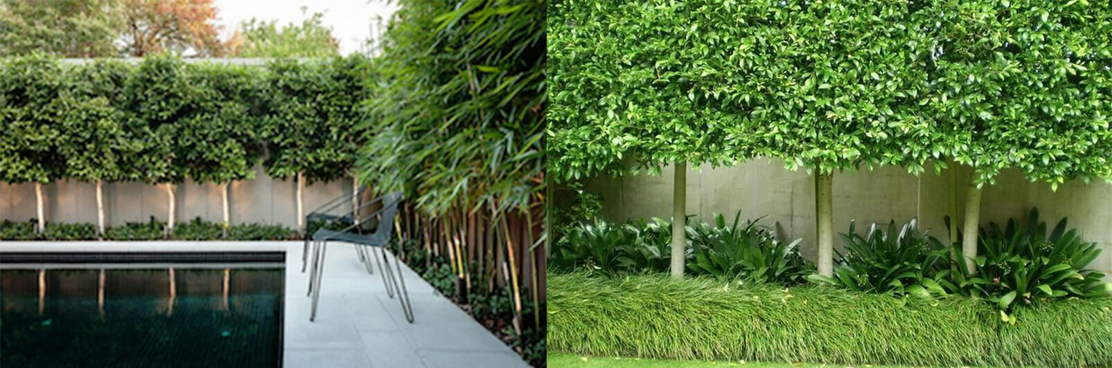 Pleaching allows large, tall-growing plants to be grown in a narrow bed without looking clumped and crowded. As they require regular maintenance to keep the elegant pleached form it also keeps these large screening shrubs and trees in check.