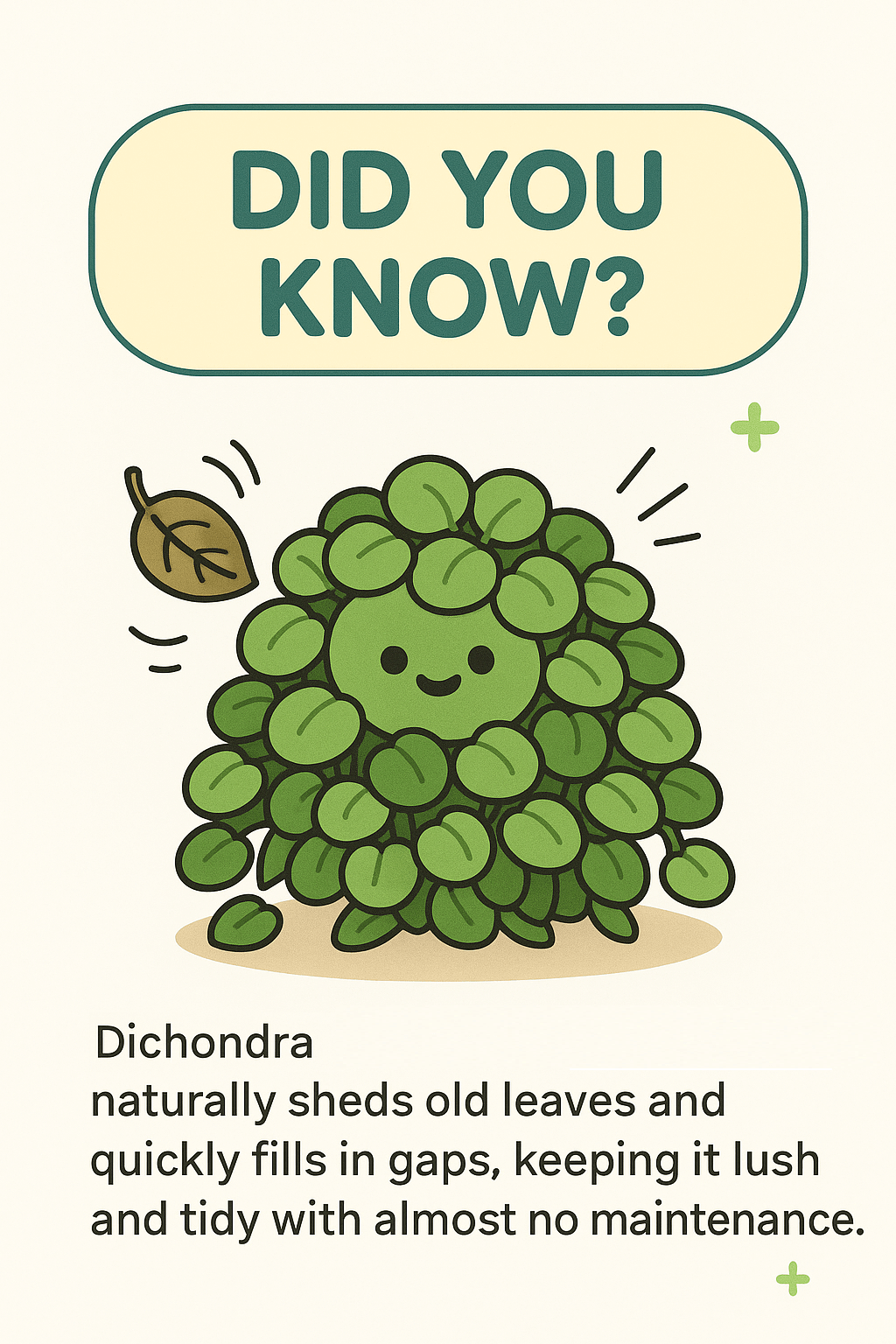 Low maintenance: Once established, Dichondra requires little attention and minimal watering.