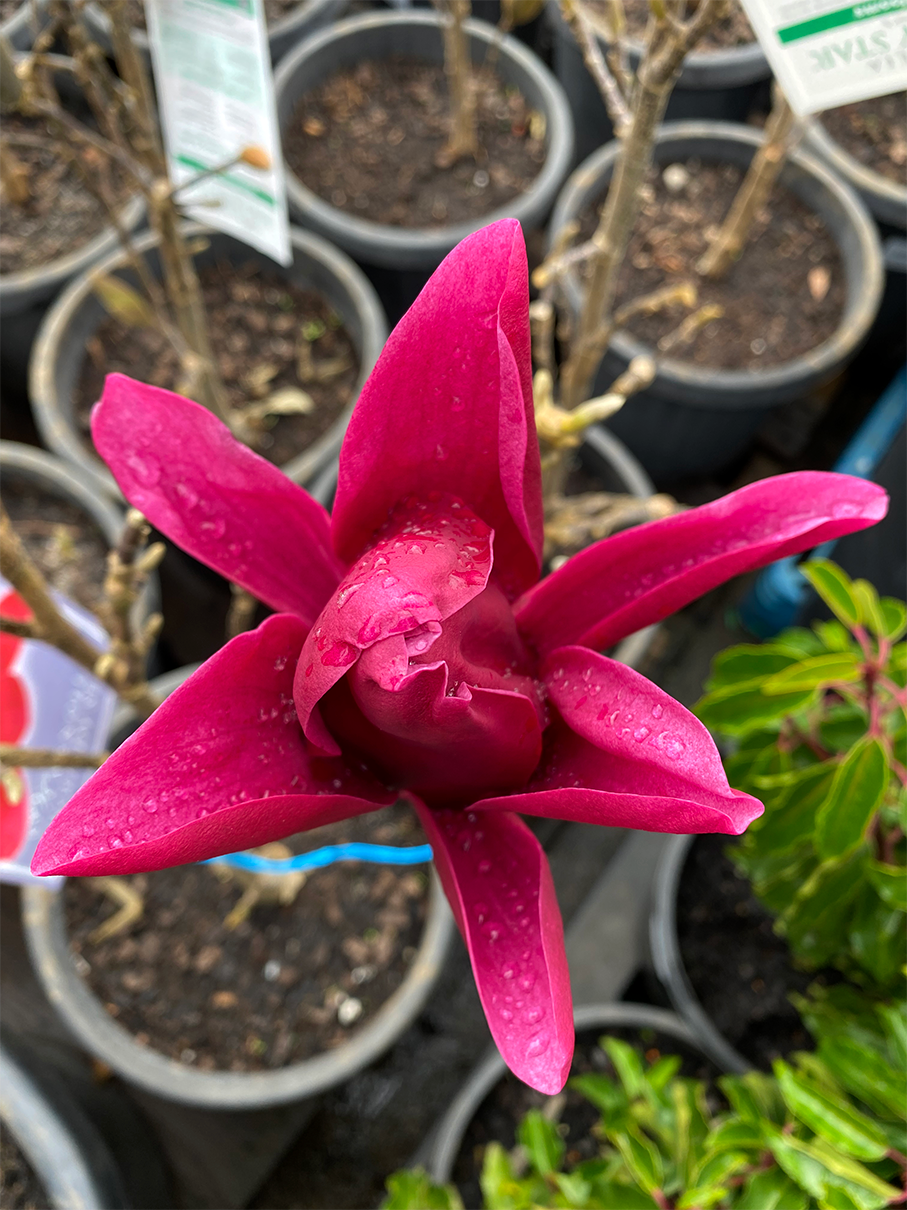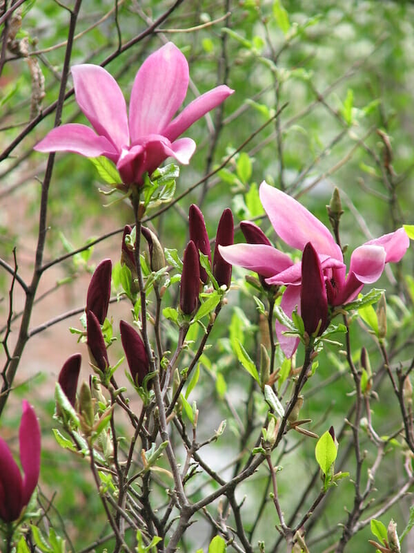 A gorgeous, rounded blooming Magnolia that grows much bigger than many of the others. Its blooms get redder as it matures.