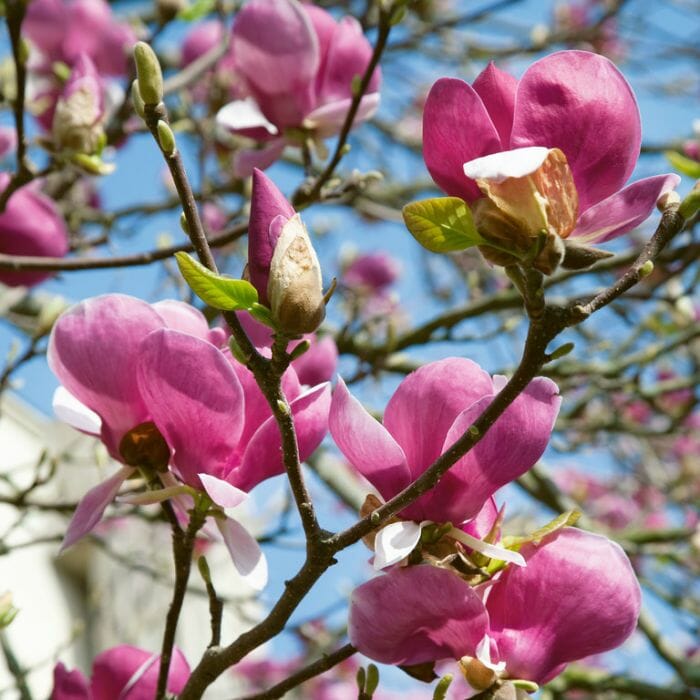 Broad petals form a big cup shaped bloom in the spring of soft pink with a flush of deep purple at the base. The Iolanthe Magnolia flowers look like large, pink lotuses, an absolute stunner!