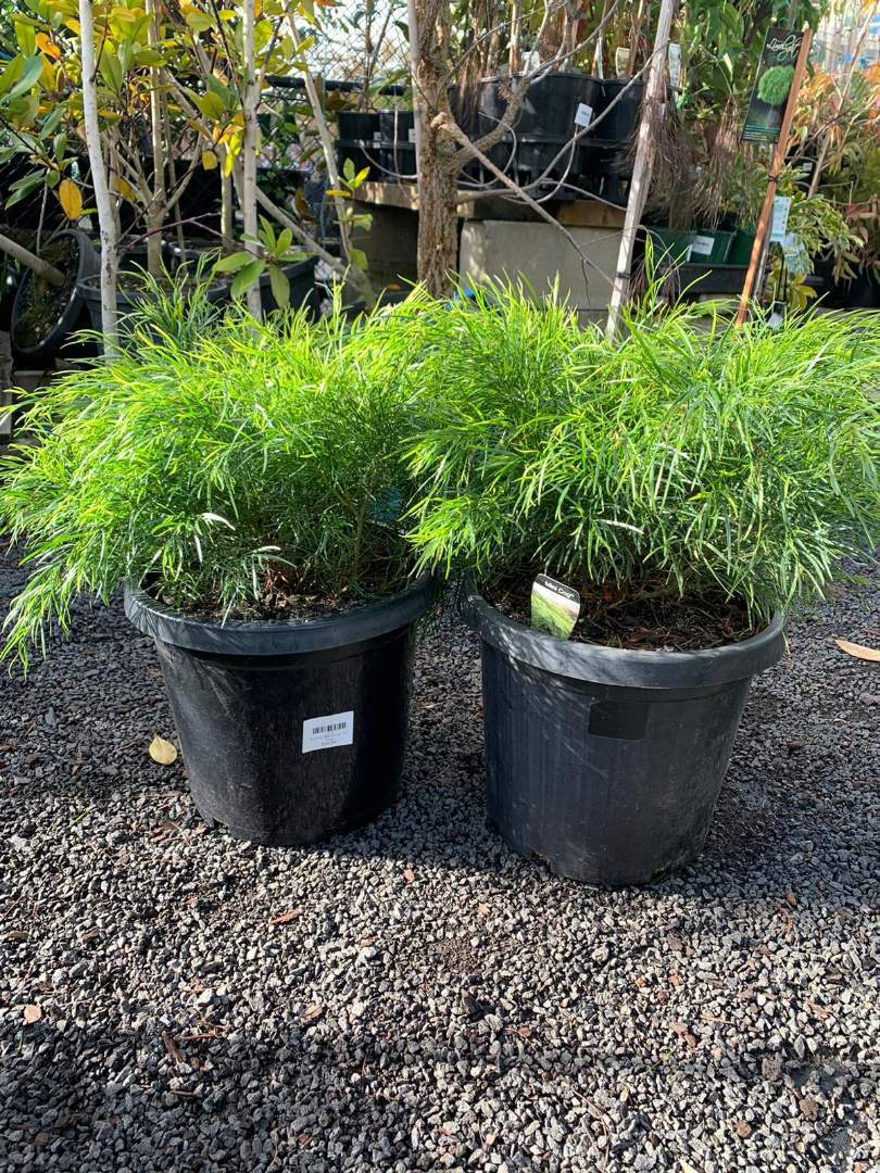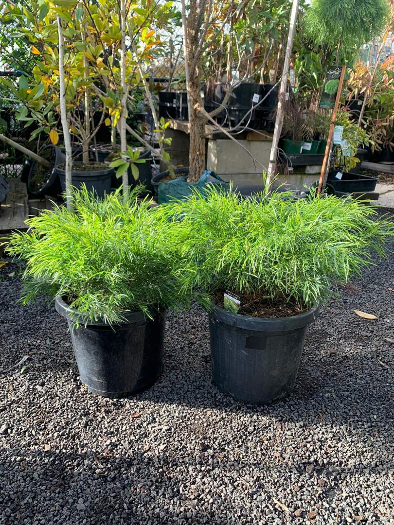 Mini Cog is an attractive low growing compact form of Acacia Cognata. This native has fine, thin, soft foliage. The leaves forms a weeping habit with lovely light green foliage turning a rich emerald green with age. Works great in low gardens and large containers. Responds well to punning and trimming.