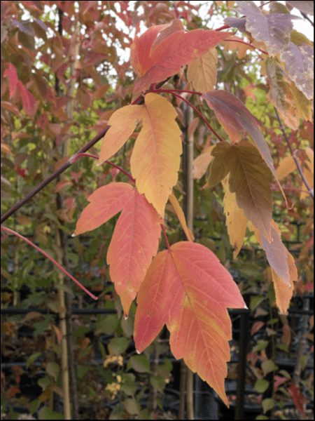 The Red Maple Sensation is a hardy and relatively fast growing maple. The new foliage it produces has hints of red, which then changes to green in Summer. Unlike other Box Elder Maples, ‘Sensation’ displays a fabulous Autumn show of bright red to orange colours.