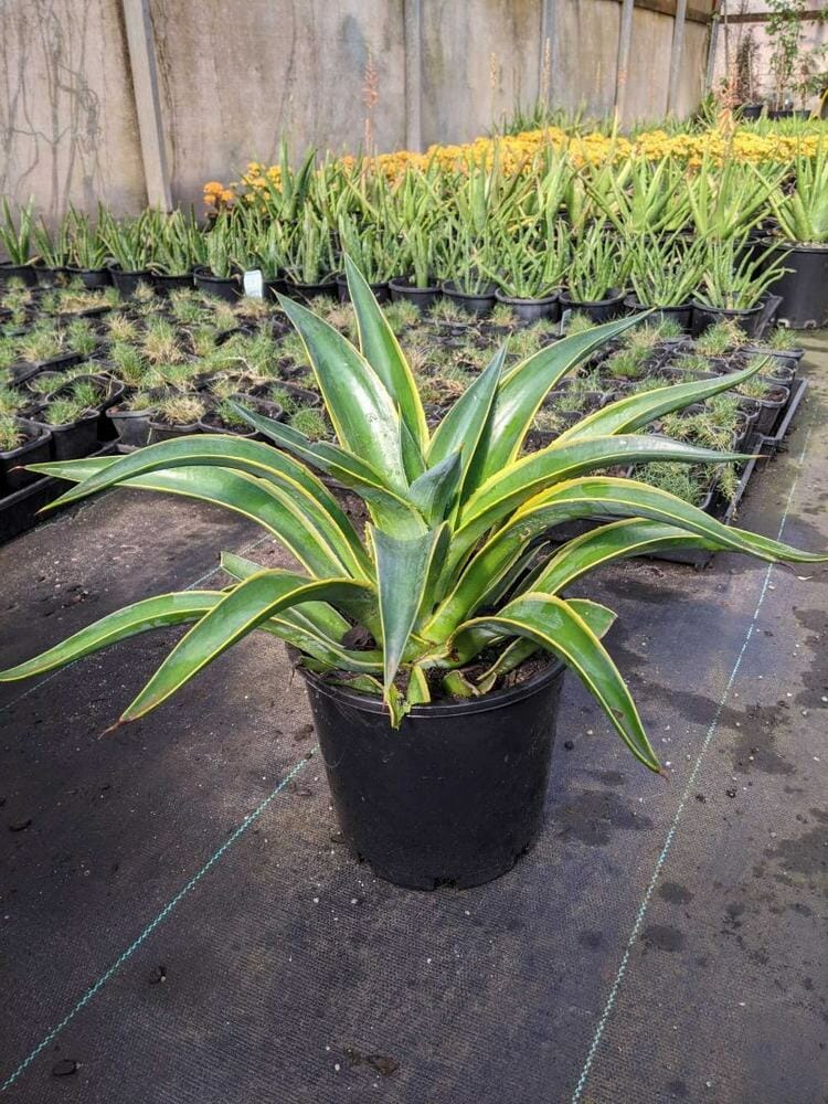 Originating from Mexico, this tough Agave has yellow striped edges on the outer leaves, with small spikes. In time it will produce large golden flowers. A slow grower, make sure you plant in a full sun to part shade position, with minimal watering required. Drought tolerant and mild frost tolerated.