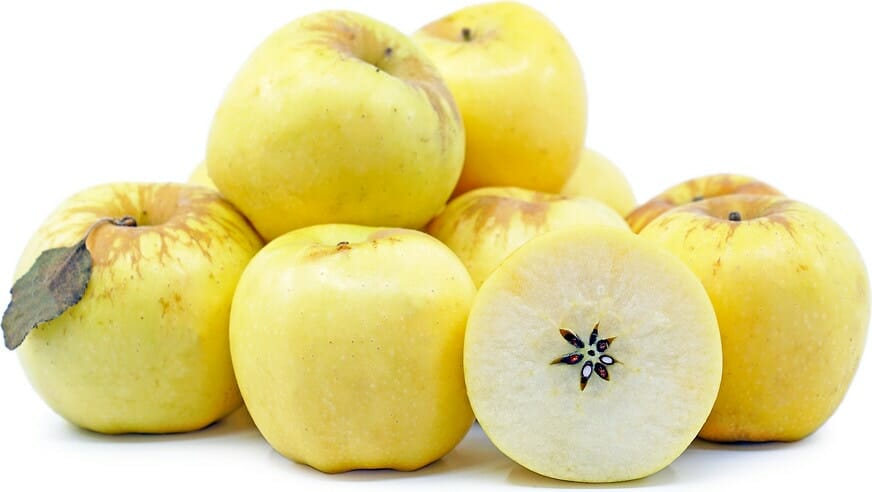 Golden Delicious apples are yellow and very sweet. The fruit features a fairly thin skin that makes it easy to eat. Golden Delicious apple trees have white blooms and dark green foliage. They polinate many other apple varieties, so are a good apple tree to include in your collection.