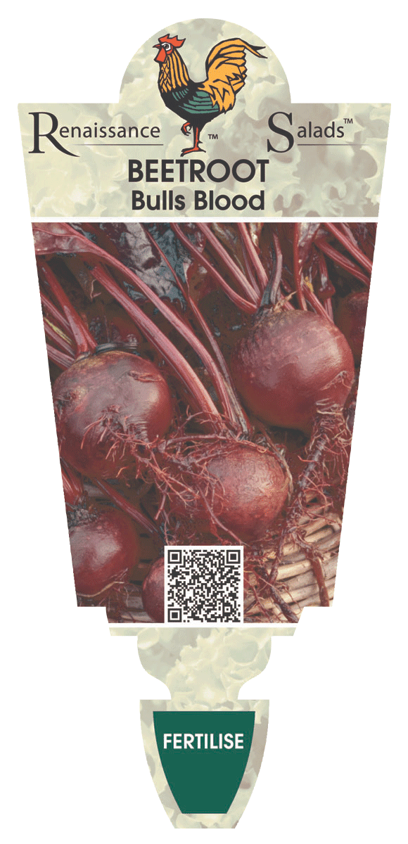 Bull’s Blood variety produces rich blood red fruit with purple/red leaves. Perfect for planter boxes and pots, plant in a full sun position with well drained soil. Protect from snails and slugs!