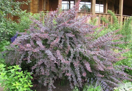The Silver Miles hybrid barberry looks quite like the purple-leaved Japanese barberry( atropurpurea) with a more interesting folliage. It shows intermediate characteristics of both of its parents: European barberry (Berberis vulgaris) and Japanese barberry (B. thunbergii)). It has deep red-purple foliage with splotches or blushing hints of silver-gray. This barberry develops into a tall, rounded to spreading mounded deciduous shrub.