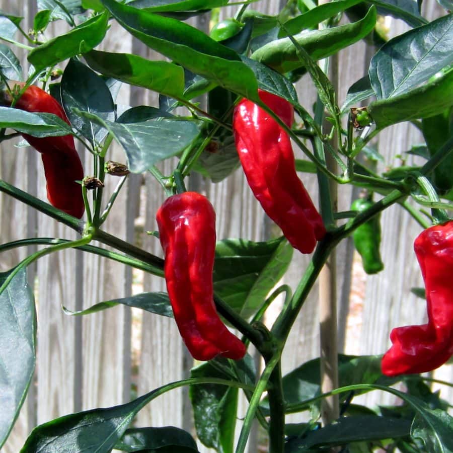 Hot Chilli Peppers are a great addition to your vegetable garden if your looking for something spicy! The long thin peppers will develop from green to bright red, best kept in full sun, water often but do not over water. They have thin walls and a wrinkled appearance. Originating from Japan.