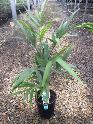 There are no dangerous parts to this palm and it looks great by itself or used in bunches to form a hedge. Grows well in tropical and coastal areas.