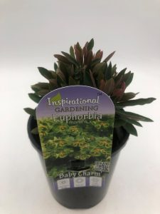 Baby Charm is an eye-catching dwarf variety with lime green flowers. These flowers open in Summer and red eyes appear which add some colour and interest. This is a desirable plant due to its easy of growth, aesthetic look and hardy nature. Grows to around 50cm high.