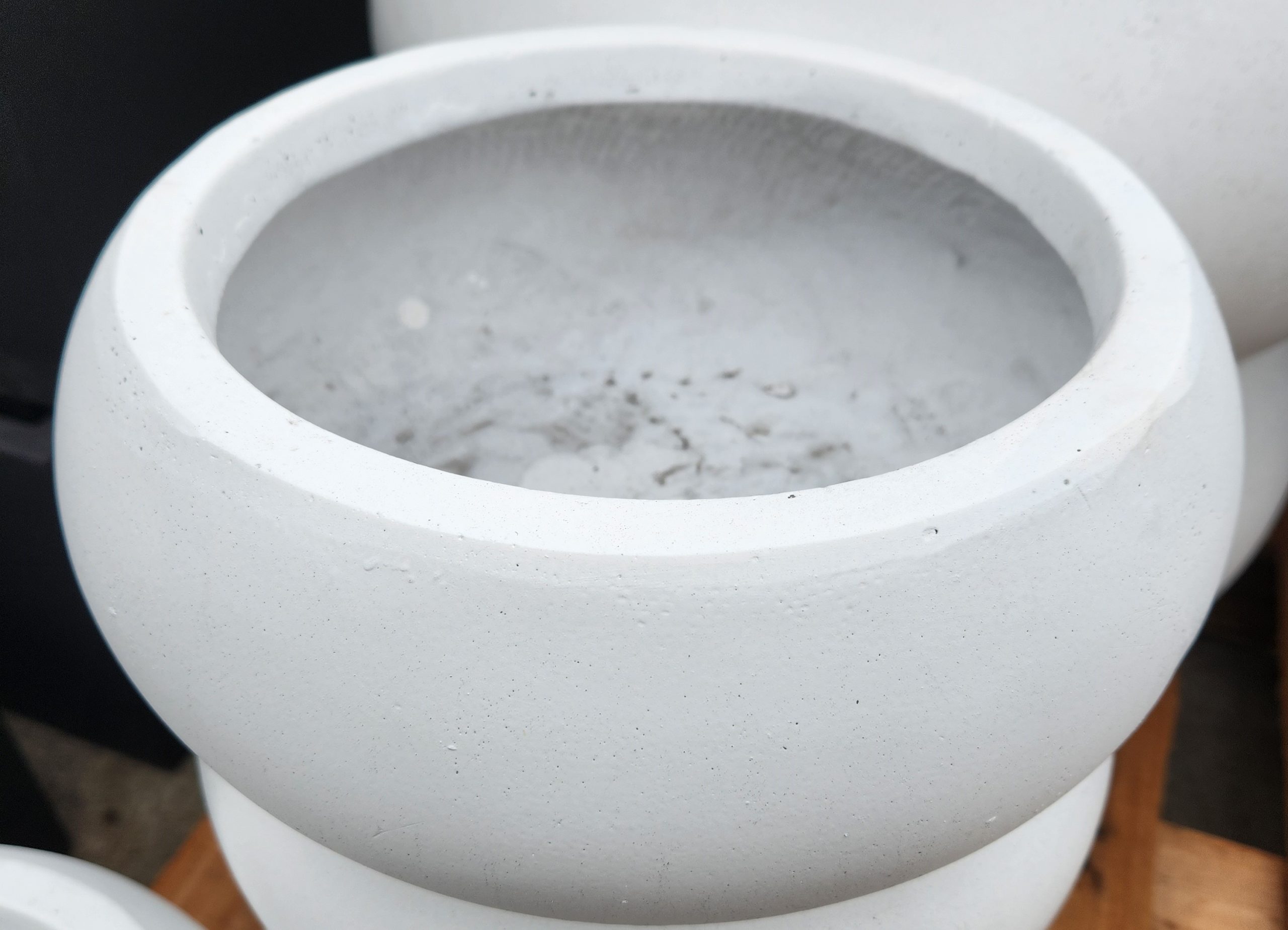 White decorative FibreClay Lightweight pots for indoor and outdoor use with feature plants. Great alone or try clustering different sizes to make an attractive feature.