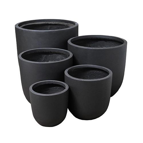 Black decorative FibreClay Lightweight pots for indoor and outdoor use with feature plants. Great alone or try clustering different sizes to make an attractive feature.