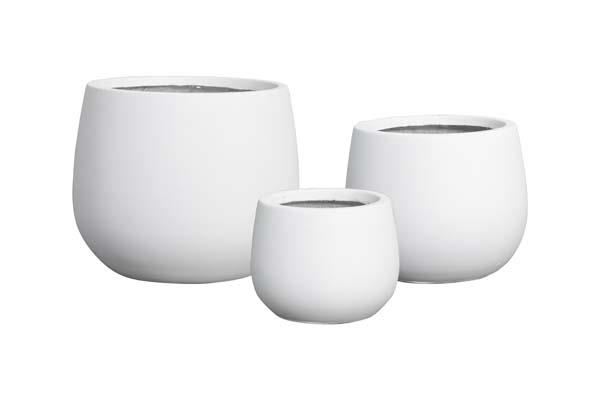 White decorative FibreClay Lightweight pots for indoor and outdoor use with feature plants. Great alone or try clustering different sizes to make an attractive feature.