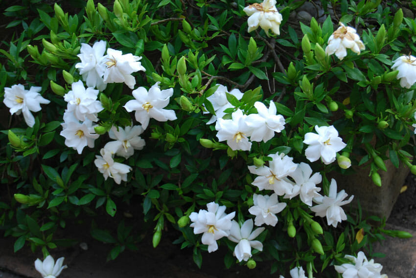 Gardinia Radicans is an evergreen ground cover with deep green leaves and highly fragrant, double, white or cream flowers that turn yellow as they age. Their scent is fantastic.