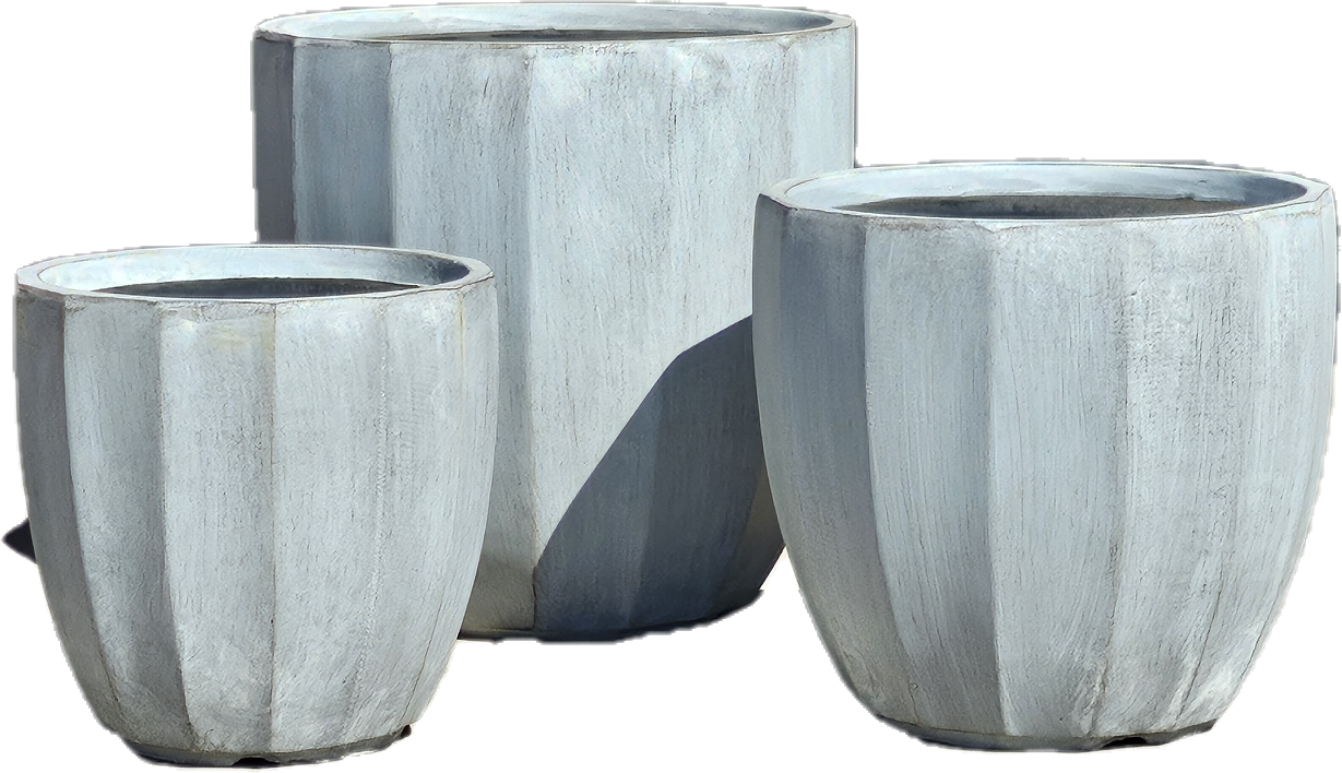 Grey Wash decorative FibreClay Lightweight pots for indoor and outdoor use with feature plants. Great alone or try clustering different sizes to make an attractive feature.