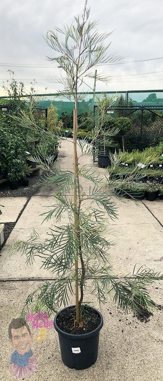 Grevillea Moonlight is a large fast-growing upright evergreen shrub with fine textured foliage and large ivory-colored toothbrush-like flowers that are there nearly all year round. This plant has low water needs.