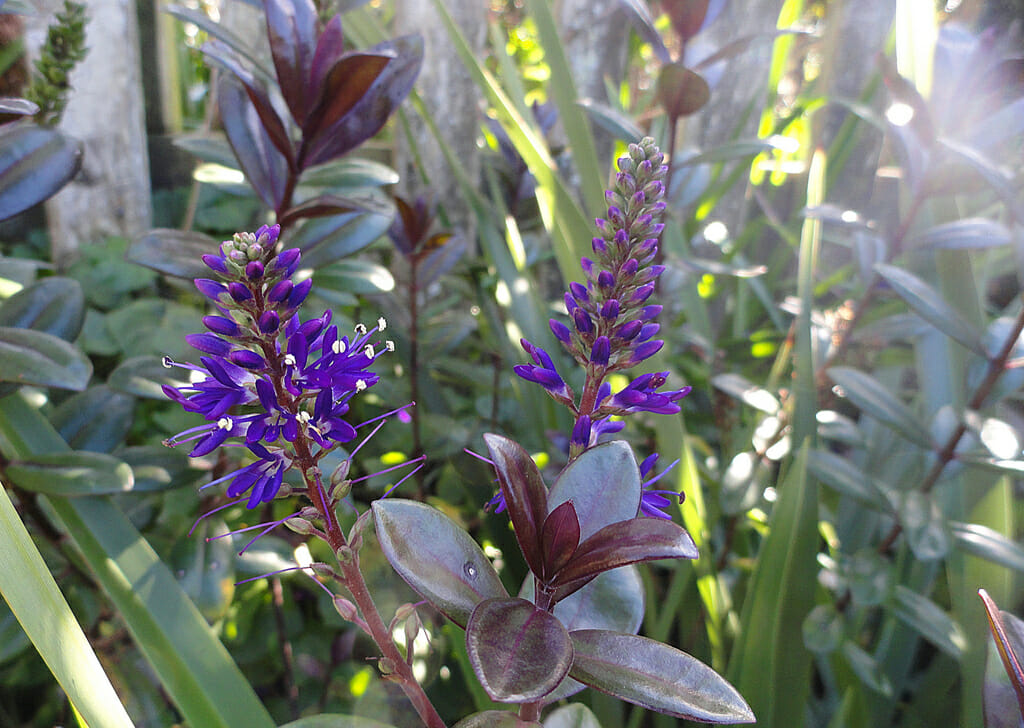 Hebe Lady Ardilaun is an upright growing plant with highly glossy deep green foliage which turns deep reddish-purple in the Winter, until the first of its rich violet flowers are produced.
