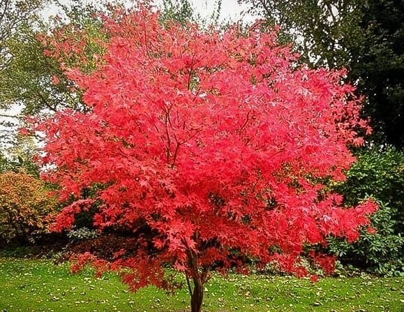 Acer palmatum is well known for it’s beautiful array of colours throughout the year, with it’s green foliage turning into a stunning crimson red in the Autumn before falling. Through the Winter it makes up for it’s lack in foliage with it’s greyish-purple bark that stands out.