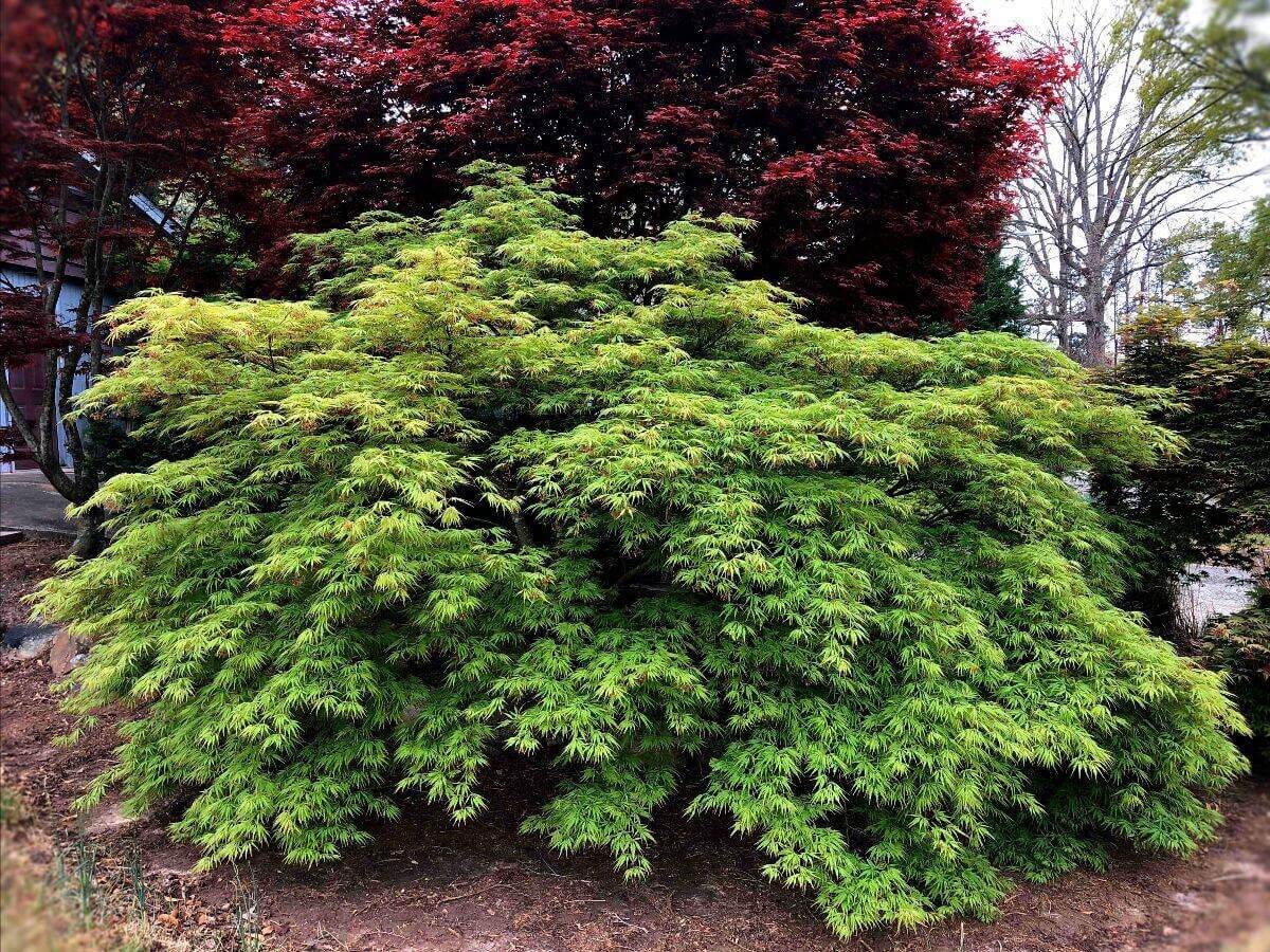 Germaine’s Gyration is a maple with long, narrow lobes that are not as dissected as most. It is a fast-growing maple with mid-green foliage changing to reddish-orange in Autumn, the vigorous growth causes the shoots to twist and intertwine. Grows to a height of 6-8ft. Requires low maintenance.