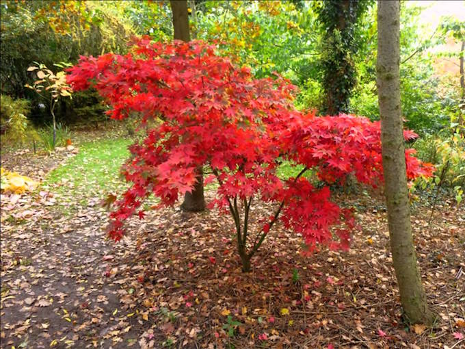 Osakazuki Maple is a large bushy deciduous shrub. The foliage this shrub bears is green but turns to a brilliant orange-scarlet in autumn.