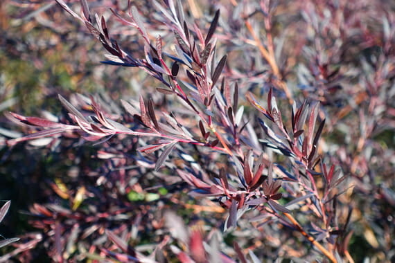 Starry Night is a versatile, fast growing shrub with deep purple leaves forming a graceful, weeping habit. In late spring and summer, bronze buds open to a profusion of long-lasting snowy white flowers. This variety attracts bee and butterflies. This is a great Australian native adaptable to a variety of soil types and conditions and can be used as a screen, hedge or specimen plant.