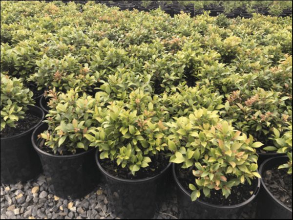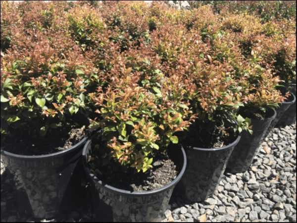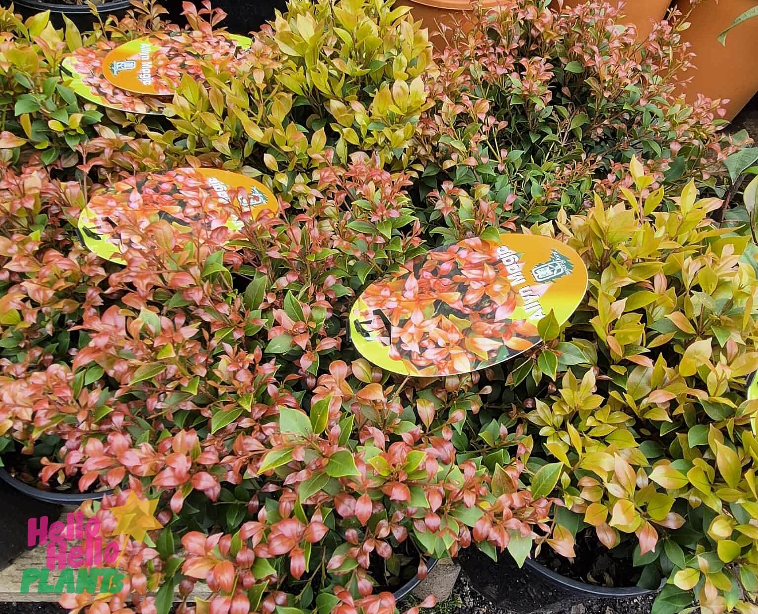 Acmena Smithii ‘Allyn Magic’ is a native Australian, compact Lilly Pilly with shiny green foliage. New foliage is a dull orange rather than red, and as a dwarf variety it doesn’t grow much taller than 2ft. Great for a low hedge or border and even in pots.