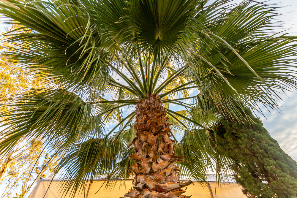 Cabbage-tree Palm is a tall, slender palm that grows to a height of around 25m. The dark, glossy green fronds crown the top of its tall trunk.