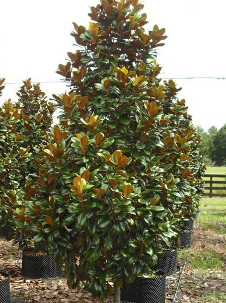Magnolia Teddy Bear features a very compact and naturally neat cone shaped habit. Solid, glossy, dark green leaves have beautiful copper undersides and give depth to the overall density of the plant. Teddy Bear has beautiful, fragrant, creamy white flowers during the Summer and Autumn period. Perfect for large tubs or as a garden specimen, Teddy Bear is unmatched as an evergreen screen.