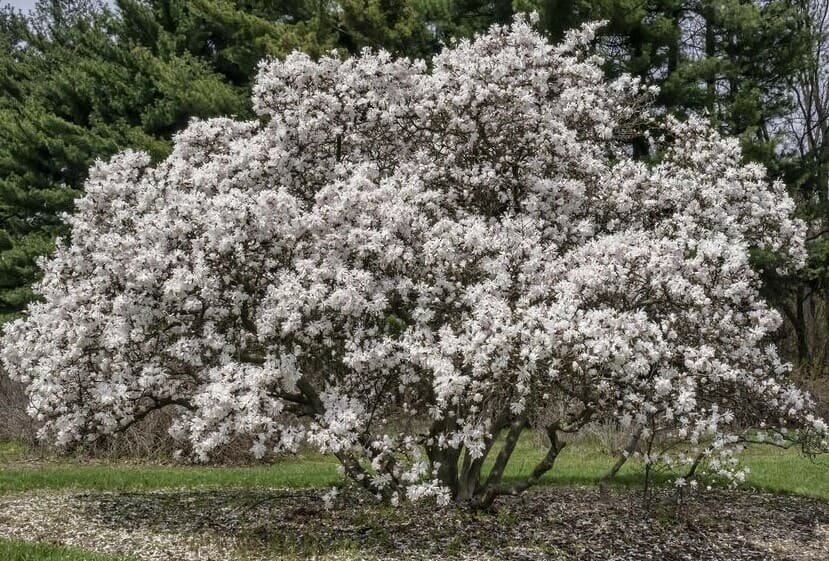 Waterlily Magnolia is a cultivar of Magnolia stellata Star Magnolia. It produces masses of furry buds that show pink on opening and the flowers are a very pale pink, quickly fading to white. It has green foliage, before shedding it’s leaves in winter as it’s deciduous. It is commonly used as a feature tree, with a non-invasive root system so they present few problems when planted near pathways or buildings or pots. Mature growth: 9x5m
