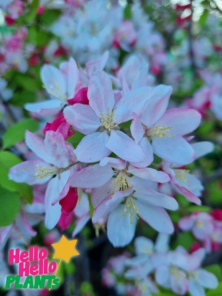 ‘Japanese Crab Apple’ or ‘Showy Crab Apple’, A round-headed, small deciduous tree that has handsome narrow foliage. Impacting crimson buds form white or pale pink flowers that bloom in Spring. Small red and yellow fruit are also produced during Autumn.