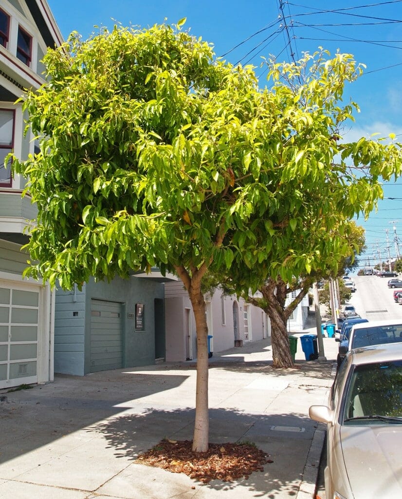 This stunning evergreen tree provides all year round foliage with slender, glossy bright green leaves that droop from horizontal branches. It then produces masses of sweetly perfumed creamy yellow flowers produced from summer to autumn. Thrives in moist humus rich, well drained soil in sunny position protected from frost. Mature height 10m.