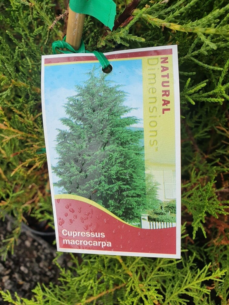 Monterey Cypress or Western District Cypress a large evergreen tree conifer which lives long and grows large in perfect conditions. Native to coastal California, it suits coastal conditions and has the unique tendancy to be “sculptured” by the wind over time as it grows.