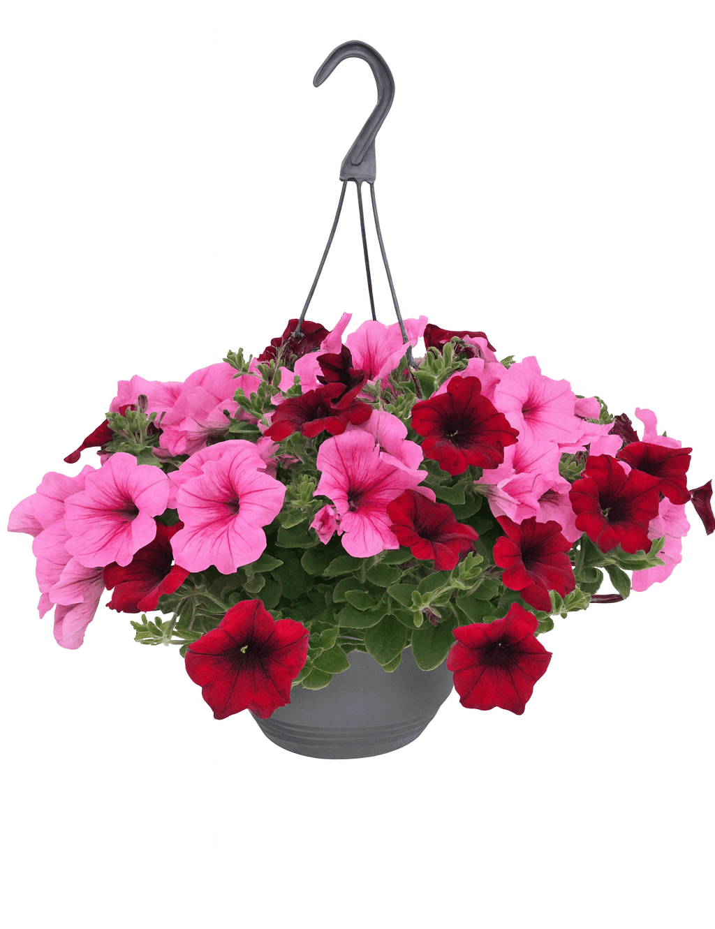 Strike the heart of your garden with the stunning beauty of Petunia ‘Cupid’s Arrow’, a vibrant trailing variety featuring a mix of soft pink and deep magenta blooms . Overflowing with romantic colour and irresistible charm, this lush hanging basket adds warmth and flair to patios, balconies, and garden entrances from spring through autumn.