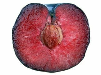 The Satsuma is a blood plum that produces a gorgeous red plum with firm but juicy, dark red flesh. Great for fresh eating and also ideal for stewing, the Satsuma is partially self-pollinating, but we recommend growing it with a Santa Rosa for the best possible crop of fruit.