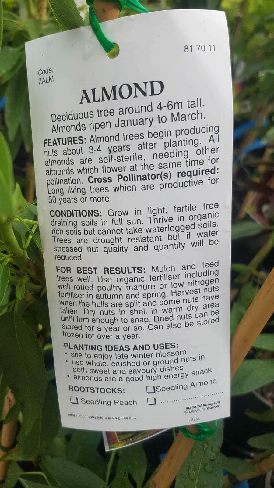 Prunus ‘Nonpareil’ Almond 4L Pot