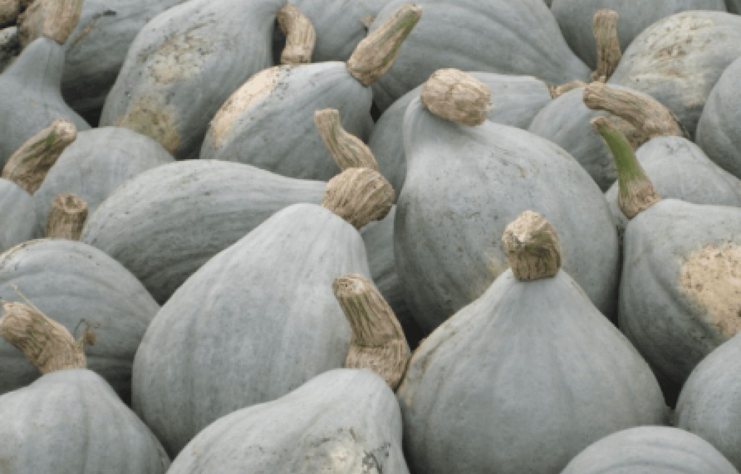 An heirloom blue/green rippled skin pumpkin with firm sweet golden flesh that dates back to the late 1700’s. Produces large fruit which can grow up to 10kg on long vines.