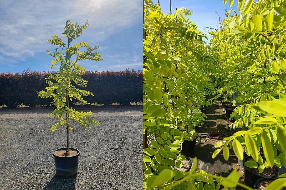 | features | Large golden-green pinnate leaves that intensifies to a deep gold during autumn, few creamy-white wisteria like flowers are produced in spring |