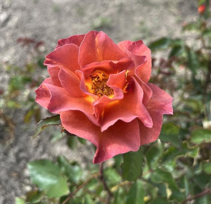 Edith rose features pretty open faced burnt orange/chocolate blooms from late spring.