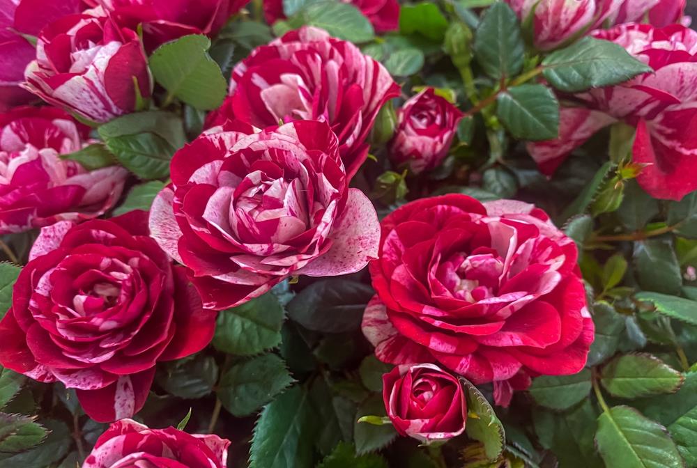 Delbard’s Rose Henri Matisse rose bears gorgeous multi-coloured petals with raspberry pink, and white striped specks.