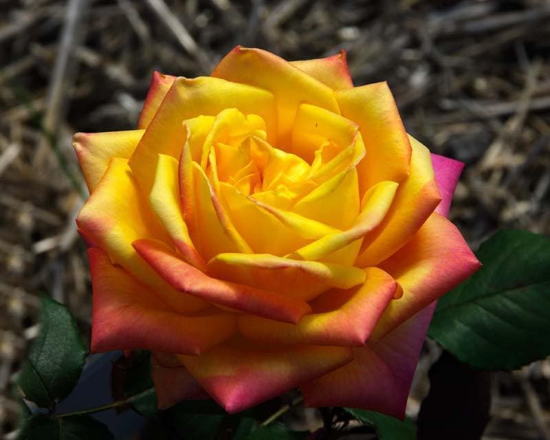 Magma is a stand out rose that has shiny yellow with darkened edges of burnt orange to red producing a brilliant bi-colour display. Long single stems with few thorns makes an exceptional vase flower.