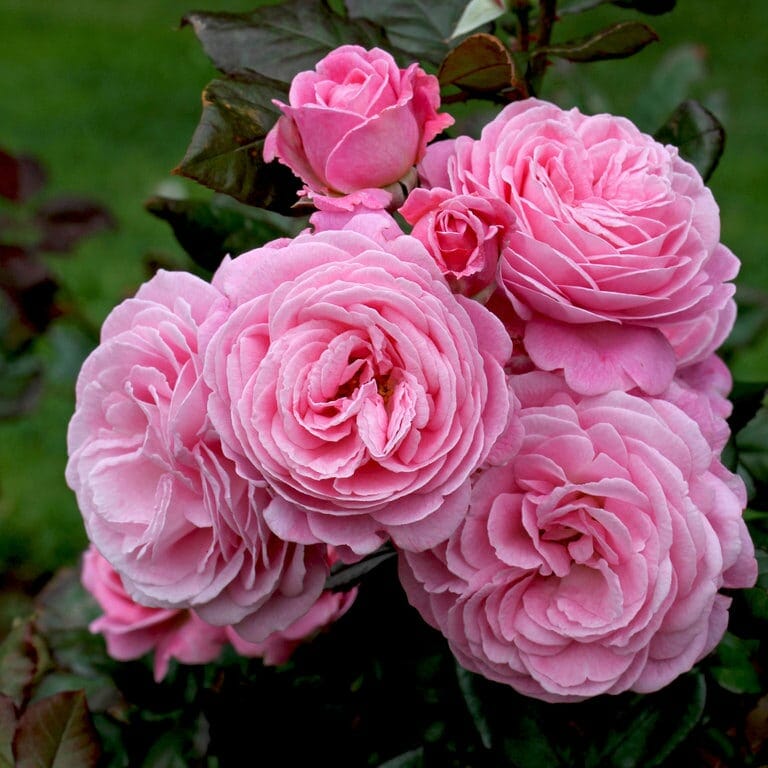 A stunning and upright floribunda rose with dark green dense foliage carrying magnificent mid pink blooms. Masses of blooms between spring to autumn. Strong fragrance, noted as spicy or licorice smelling.