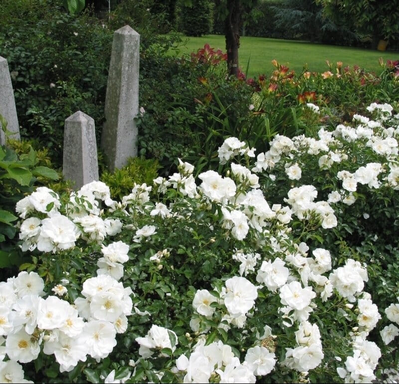 White Carpet Rose provides gorgeous blooms which have a long flowering period, it is an easy to care for plant, that have exceptional disease resistance and are drought tolerant. This variety is very tolerant of common rose blights such as black spot and mildew. Ideal for use in flowerbeds, mass plantings and large containers. Can grow in both full sunlight and partial shade.