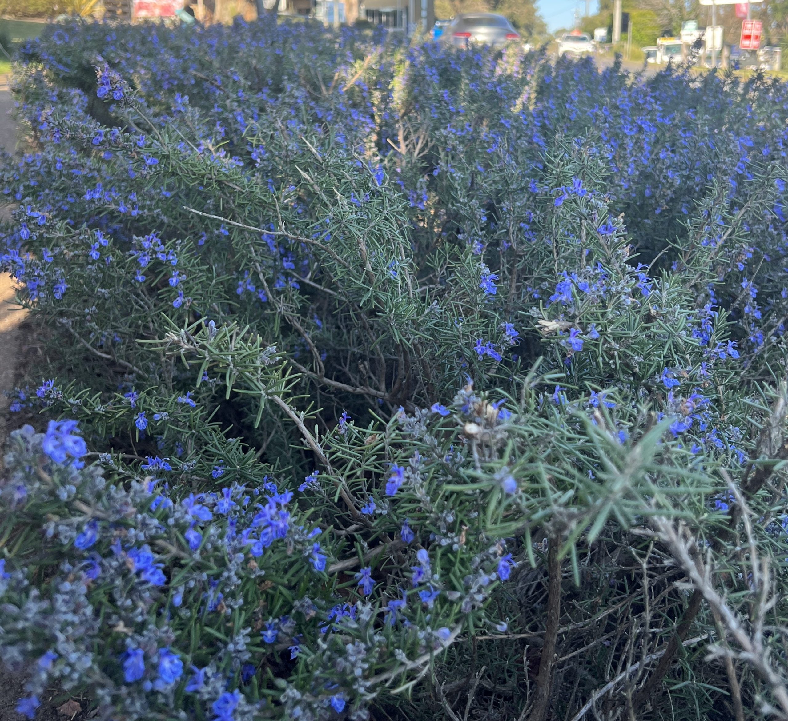 Rosemary Blue Lagoon is a low growing, spreading shrub that grows about 1m tall and 2m across. It is very impressive when flowering as it’s just a mass of blue.