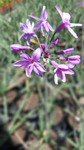 A neat, low growing strappy leaved perennial plant in the onion family.