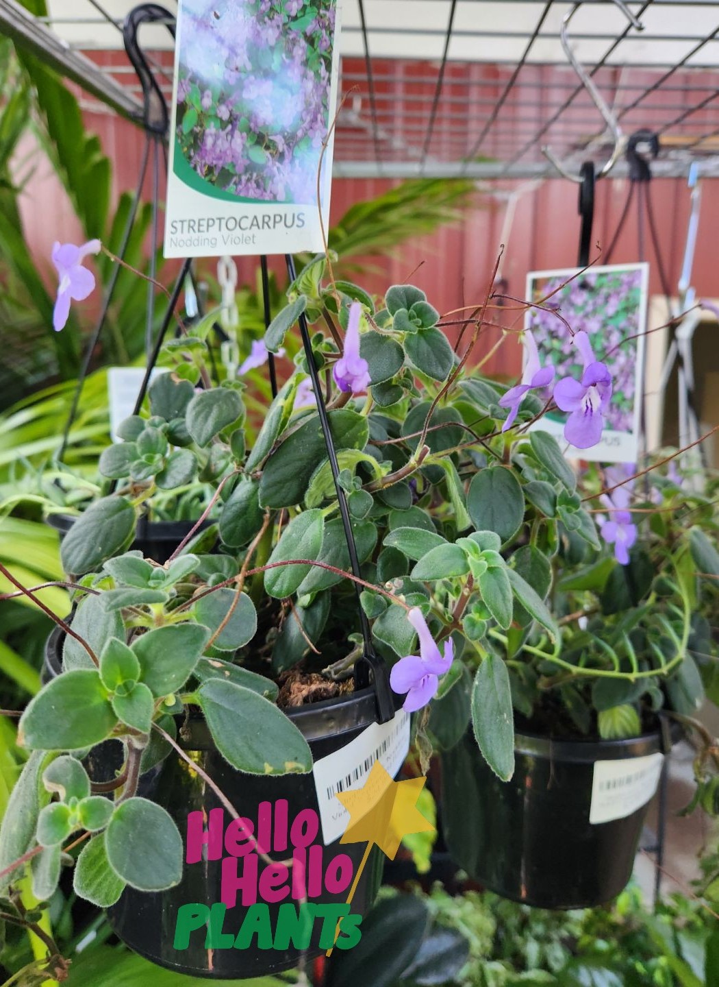 Nodding Violet is a dainty, evergreen house plant with delicate hanging mauve flowers.