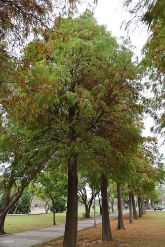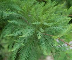 The Swamp Cypress or Bald Cypress is a tall, deciduous, ornamental tree with a pyramidal habit that is very useful for boggy, even waterlogged spots in the garden. It has finely cut, light green foliage that turns golden before dropping. Its bark is deeply fissured and red/brown and rounded purple cones. Thrives in wet soil. Mature growth: 15x5m wide