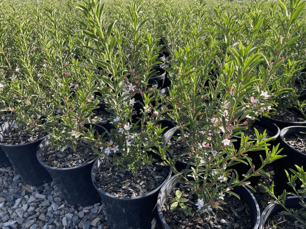 Winter Rouge produces masses of pink buds that open to stunning, white starry flowers. This is a hardy, compact shrub that has bright green aromatic foliage. Grows to roughly 80cm in height.