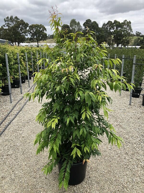 We source our Waterhousia from Northern NSW as they have a warmer climate offering larger and bushier plants than those sourced locally, giving our customer better value for money. You may notice that the plants have some cosmetic psyllium damage that resemble bumps or blisters on some of the leaves. Rest assured our grower has sprayed the plants and there are no live psyllids remaining on them. Weeping Lilly Pillys are a popular choice with minimal berries and a lovely weeping evergreen habit, we know you will enjoy these plants . However if the cosmetic damage is something you are concerned about we can look to provide you alternative species that may also be of interest.