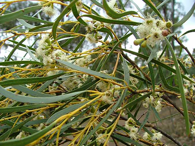 The White Peppermint is a medium to large Australian native tree with long, thin, strongly scented dark green foliage. It has a weeping habit and smooth, white to grey bark.