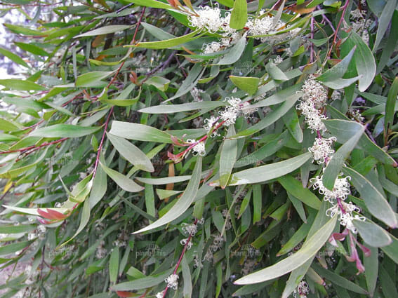 Willow Leafed Hakea is a medium size native Australian shrub or small tree with attractive willow like leaves and masses of white flowers from winter to spring. New growth is tinted purple.